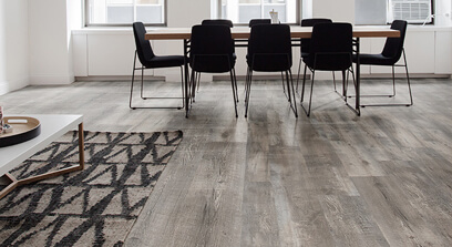 A cost-efficient substitute to natural floors, vinyl flooring features a wide range of styles, colours and finishes that look and feel like real wood.